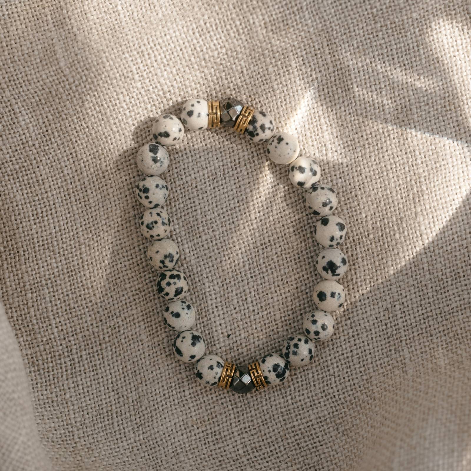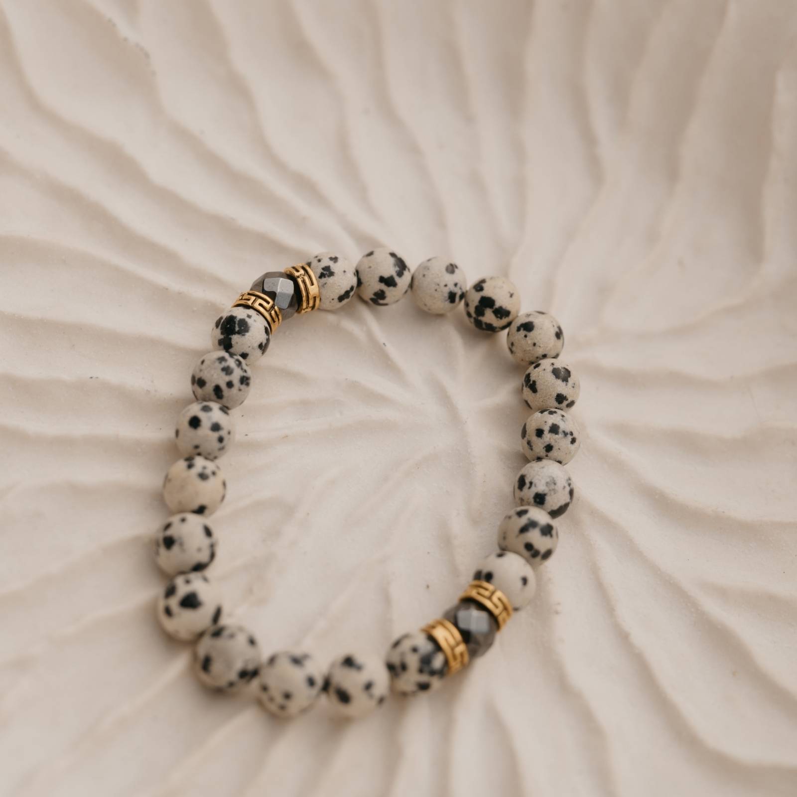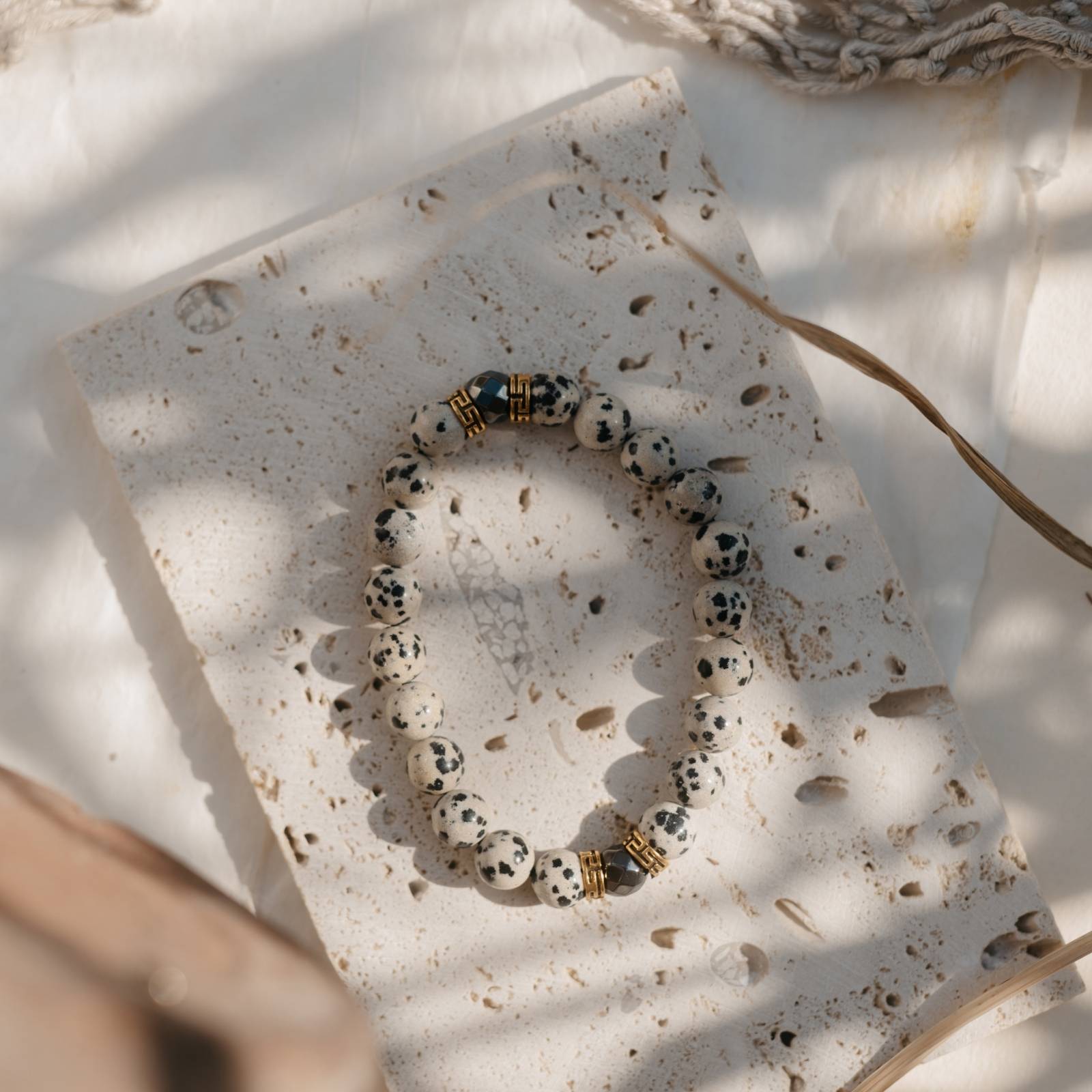 Męska Bransoleta z Jaspisu Dalmatyńskiego i Hematytu „Guardian”